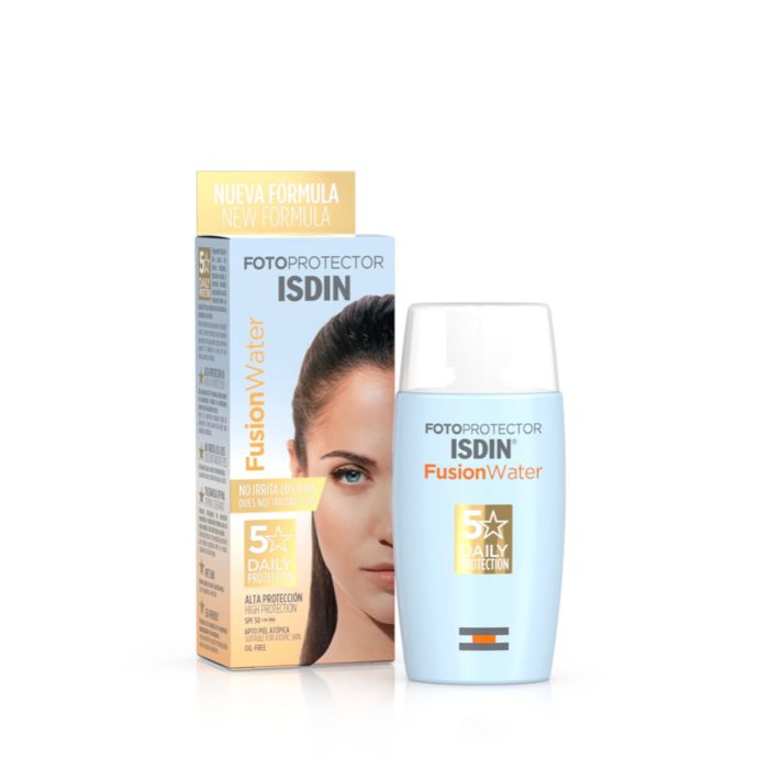 ضد آفتاب ایزدین فیوژن واتر بی رنگ، یک ضد آفتاب مناسب برای انواع پوست است. دارای SPF50 می باشد و از پوست در برابر اشعه های UV محافظت می کند. ضد آفتاب فیوژن واتر ایزدین بی رنگ با قابلیت جذب سریع، روی پوست های خیس و نم دار و حتی اطراف چشم قابل استفاده است. این محصول دارای بافت سبک فیوژن واتر است و حس سنگینی و چربی روی پوست ایجاد نمی کند؛ همچنین از خشکی پوست نیز جلوگیری می کند.